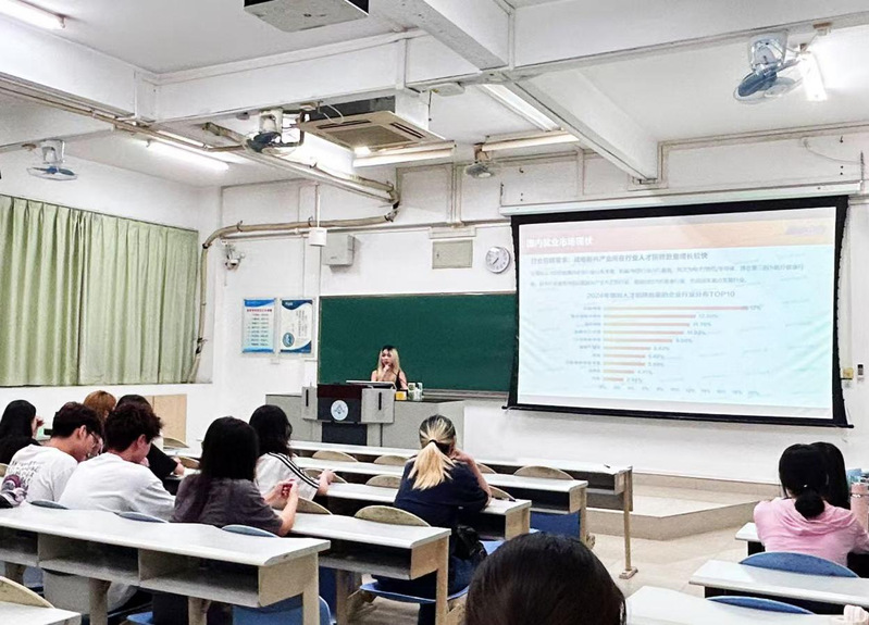 讲座伊始,张嘉雯老师对当前高校毕业生所面临的整体就业环境进行了深入剖析。在整体就业承压的背景下,结构性机遇依然存在:如在战略新兴产业等领域的人才招聘需求保持稳定增长,部分企业对传统的行政、文秘等职能类岗位的应届生需求有所收缩,而对客户服务、基层管理等兼具服务意识与综合协调能力的职位需求呈现上升趋势,这要求学生在规划职业路径时需更具前瞻性和灵活性。