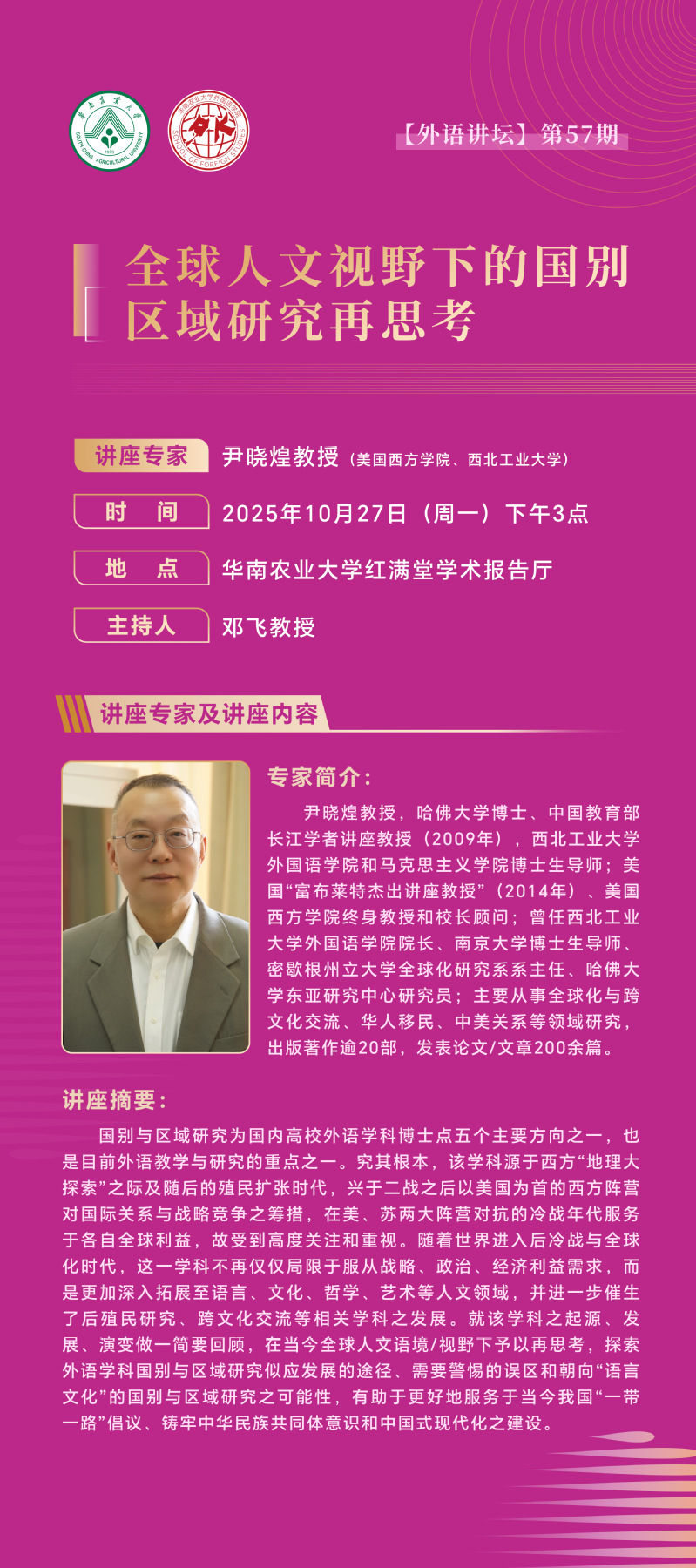 【外语讲坛】第57期:全球人文视野下的国别区域研究再思考