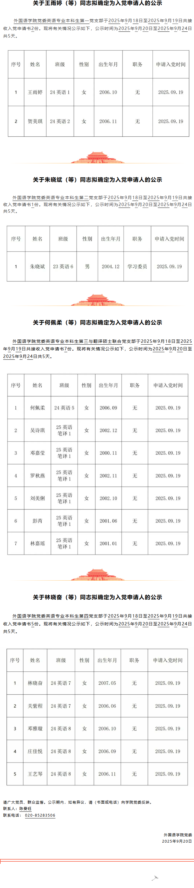 关于王雨婷(等)同志拟确定为入党申请人的公示