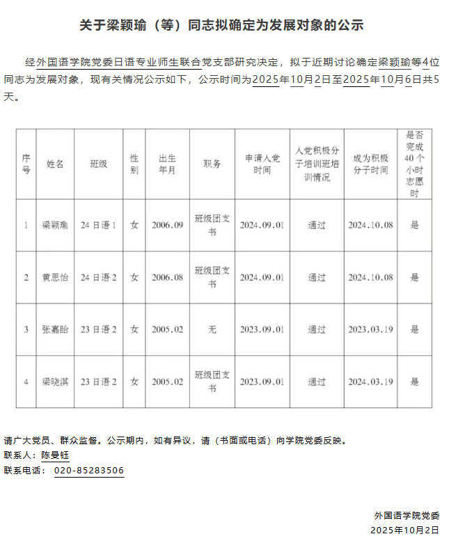 关于拟确定杨希怡(等)同志为发展对象的公示