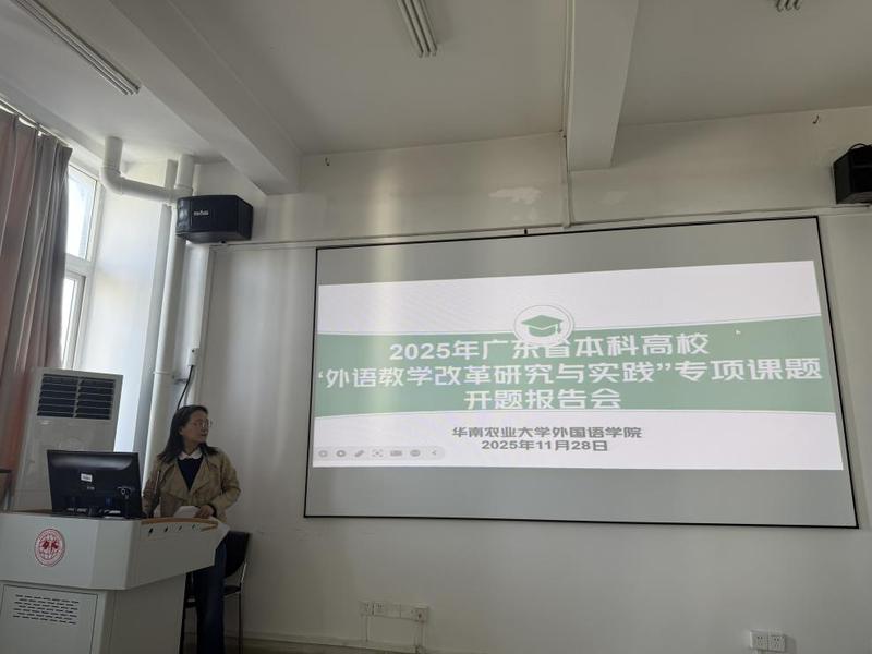 11月28日,2025年广东省本科高校“外语教学改革研究与实践”专项课题华南农业大学开题报告会成功举行。本次报告会聚焦新时代外语教育改革的前沿方向,由课题负责人侯金萍、杨敏分别就其所主持的专项课题进行了开题汇报,并特邀省内多位外语教育领域专家进行评议指导。