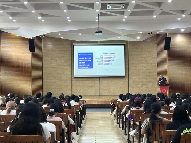 为扎实推动毕业生高质量就业,帮助学子明晰职业发展方向,9月28日,外国语学院于真维斯一楼报告厅成功举办大学生考公考编指导讲座。本次讲座特邀公考资深讲师刘思远主讲,面向2026届毕业生开展系统性政策解读与备考指导。