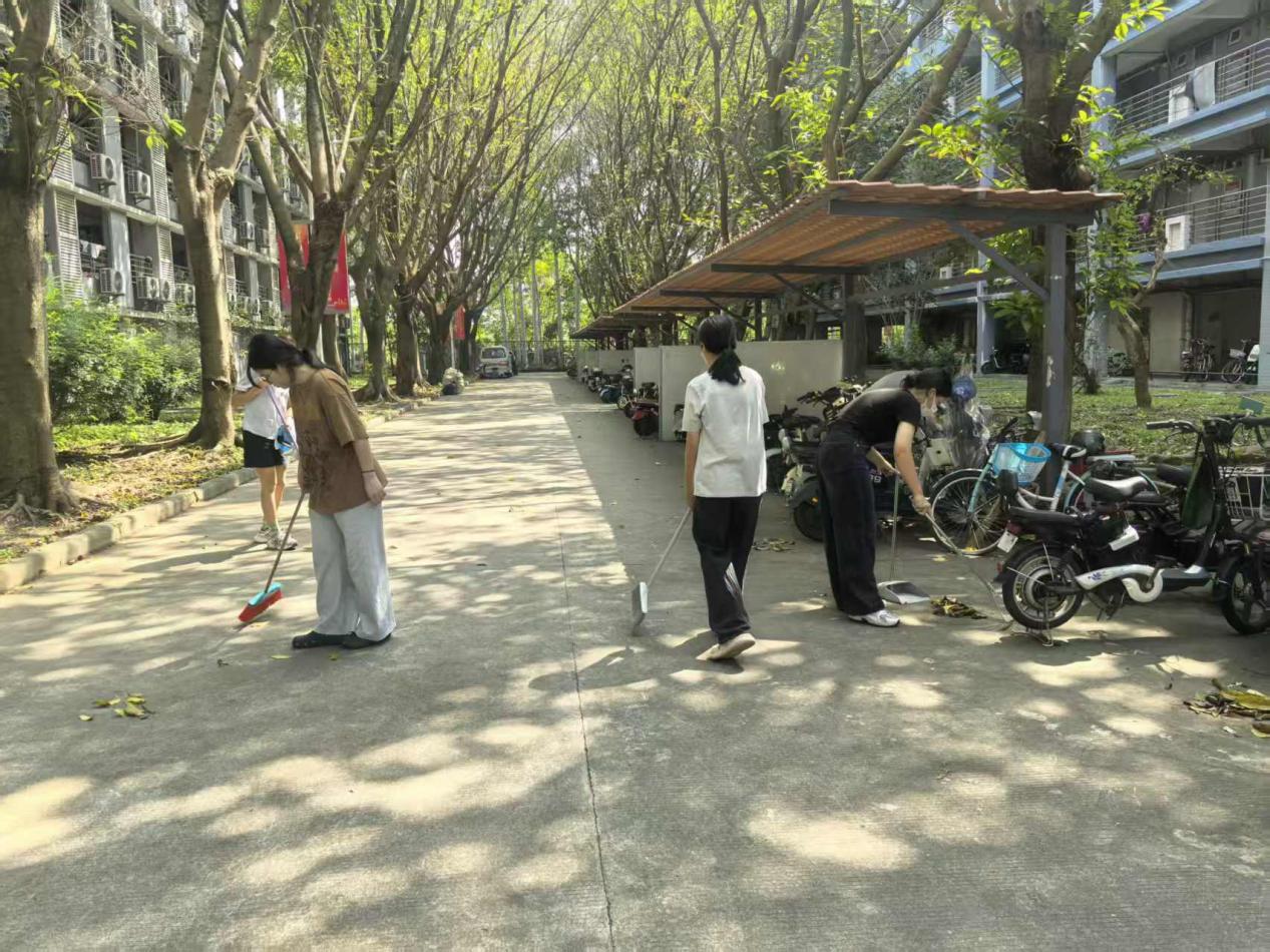 本次活动的内容主要包括清理社区责任路面卫生、电动自行车摆放整理、倾倒积水容器等。在社区临时党支部负责人介绍了活动内容且对人员进行简单分工后,同学们便迅速前往所负责的区域开展工作。