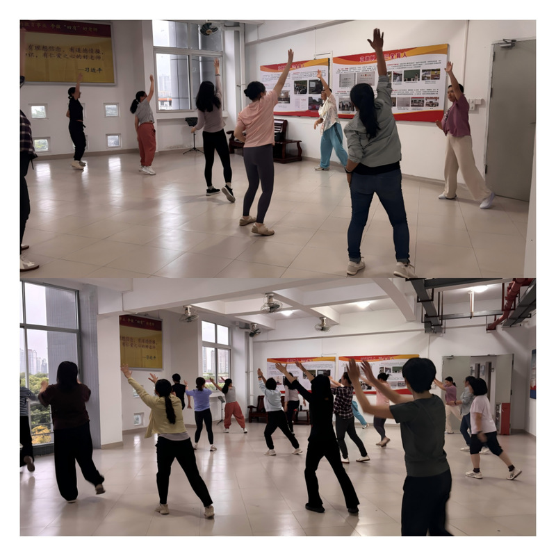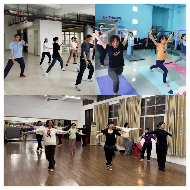 在常规活动项目中,太极拳以舒展身心、调和气血为核心特色,助力教职工在张弛有度的习练中焕发身心活力;民族舞课程课堂氛围热烈,已成为教职工释放压力、增进人际交流的重要平台;针对教职工需求,瑜伽课程特别调整至每周一中午开展,便于教职工在放松身心后,以更饱满的精力投入下午的教学工作。